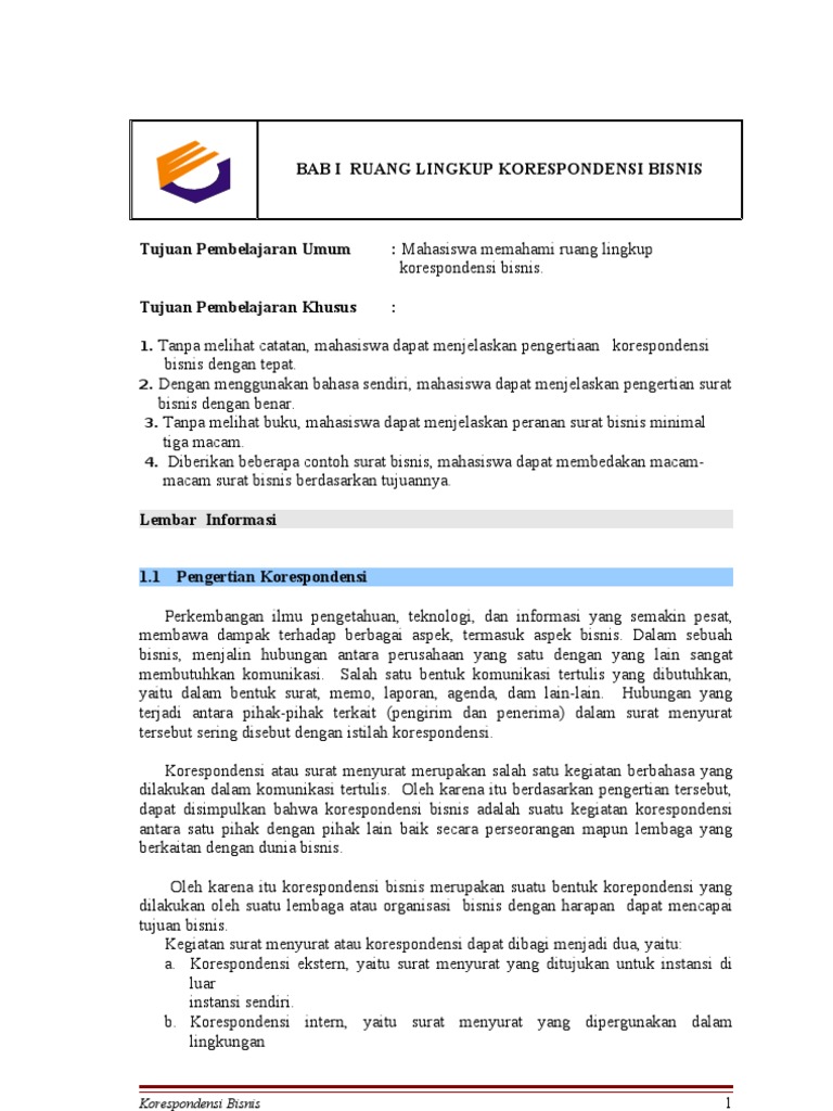 Bab i Ruang Lingkup Korespondensi Bisnis