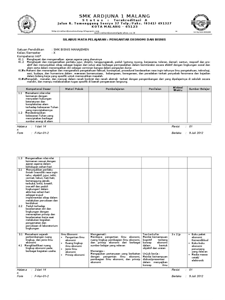 Silabus mata pelajaran ekonomi bisnis untuk smk kelas x ini untuk smk kompetensi keahlian akuntansi dan keuangan lembaga. Komunikasi bisnis (praktek) kode : Download silabus ekonomi bisnis kelas x smk.