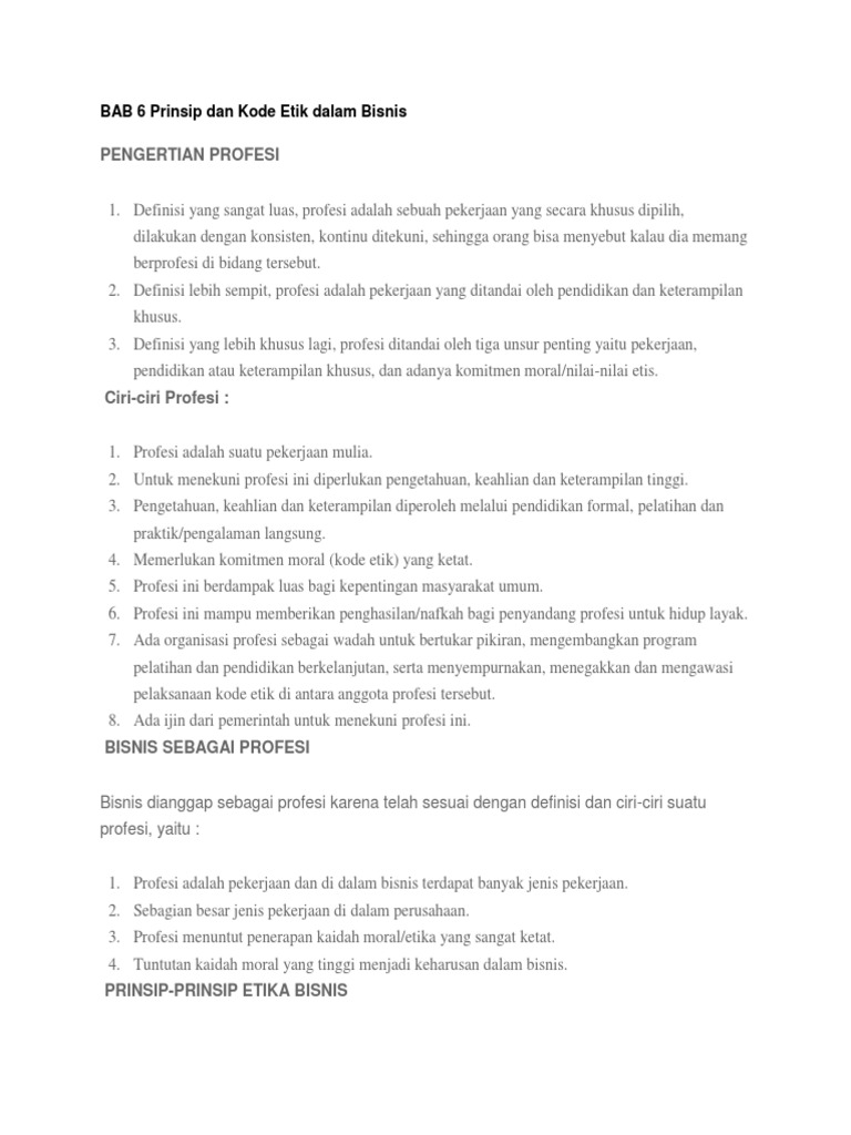 Prinsip Dan Kode Etik Dalam Bisnis Pengertian Profesi